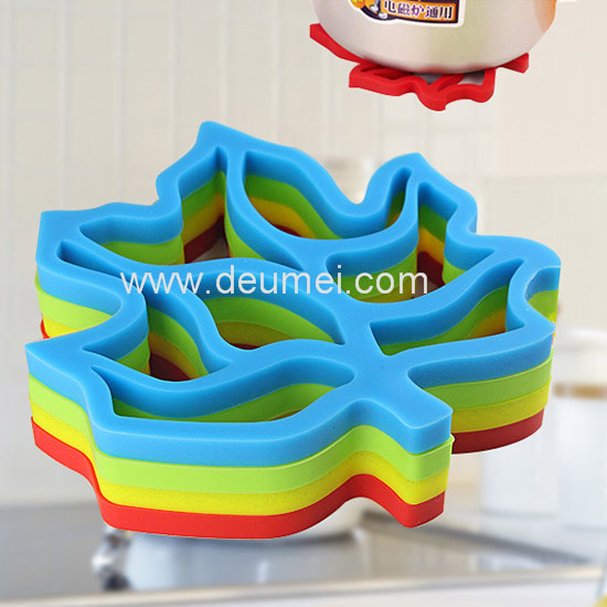 High Quality Practical Creative Insulation Silicone Maple Leaf shape Green Color Table mat Images |